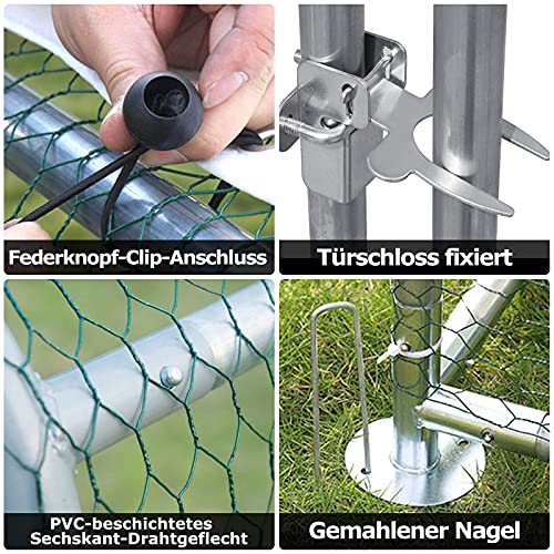 【Sicher und Langlebig】Der Körper von Hühnerstall ist aus hochwertigem, verzinktem Stahlrohr gefertigt, mit fester Struktur, rost- und korrosionsbeständig, was den Hühnerstall wetterfest und langlebig macht. Ideal für den langfristigen Einsatz im Freien.