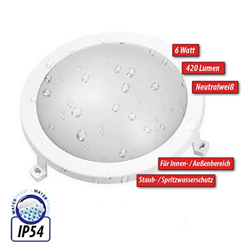 6W 420 Lumen | Helle Wandleuchte, Deckenleuchte für Garage, Keller, Flure, Terasse, uvm. Abmessungen: (DxH) Ø172mm x 75mm