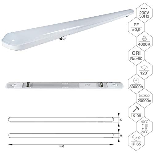 VERWENDUNG: Diese hermetische Wannenleuchte eignet sich sondern den Ergreifung in schwierigen Arbeitsbedinungen z.B in Industriehallen, Lagerhallen, Werkstätten in Stellung.