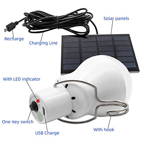 LED Solar Glühbirne, Tragbare Solarlampe LED Solar Licht mit Solarpanel für Außen Innen Camping Wandern Angeln…