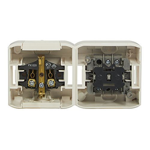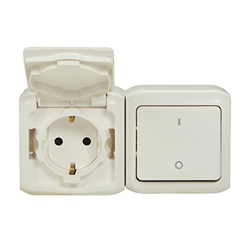 Feuchtraum-Aufputz-Schaltersteckdosen Kombination waagerecht IP44, Schuko Steckdose 2-polig über Schutzkontakt, Deckel & 2-poligem Ausschalter, ideal zur Montage auf der Wand z.B. Keller, Waschküche, Hauswirtschaftsraum, Werkstatt, etc. Statt dessen den Innen-weiterhin Außenbereich entsprechend Abenteuer: max 250V Strom: max. 16A (FORIX IP44 SSDO ZWEIPOLIGER AUSSCHALTER)