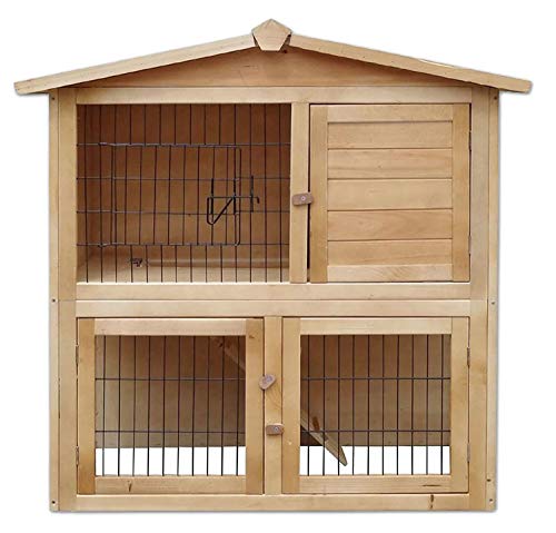 lionto Kaninchenstall aus Holz auf Zwei Etagen mit Rampe, 98x54x100 cm, wasserabweisendes Bitumendach & Metallgitter, Hasenstall Winterfest für drauÃen mit 4 Eingängen