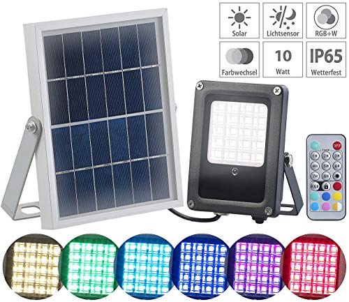 LED-Fluter inklusive Solarpanel, Fernbedienung, Montage-Zubehör, 2 Erdspießen und deutscher Anleitung. Solar Flutlicht mit Fernbedienung – Außerdem relevant oder passend zu: Zeitschaltuhr mit Dämmerungsschalter, Pflanzen Sensor, Arbeitsleuchte, Pflanzenlampe, Pflanzenlicht, Bodenleuchte, Lichterkette, Strahler RGB, Baustrahler, warmweiß, Leuchte, Panels, Blume, Grill, Kette, blaue, Spot, BBQ