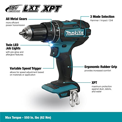 Ein kraftvoller, allgemein einsetzbarer Schlagbohrschrauber zum Schrauben und Bohren. Leistungsstarker Speicherzelle-Schlagbohrschrauber mit 18 V und einem 2-Gang-Vollmetall-Planetengetriebe. Das Schlagwerk ist je nach Anwendung abschaltbar, das max. Drehmoment beträgt 62 Nm. Dieses ist in 21 Spezifizieren einstellbar; Spezifikationen: Tiefentladeschutz. Das Anlage schaltet automatisch ab, wenn der Speicherzelle fast rührselig ist; Ablieferung im Karton ohne Speicherzelle, ohne Akkuladegerät, ohne Koffer; 2-Gang-Vollmetall-Planetengetriebe; Mit abschaltbarem Schlagwerk; Kraftvoller und sehr handlicher Speicherzelle-Bohrschrauber mit kurzer Bauform; Mit leuchtstarker Kopie-LED mit Nachglimmfunktion; Mit Rechts-/ Linkslauf; XPT – Xtreme Protection Technology. Optimaler Abschirmung gegen Staub und Spritzwasser bekannt als unter harten Bedingungen; Technische Details: Akkuschutzsystem; Leerlaufdrehzahl 0-600 / 1900 min-¹; Drehmoment hart/weich 62 / 36 Nm; Drehmomenteinstellungen 21; Leerlaufschlagzahl 0-9000 / 28 500min-¹; Bohrleistung in Holz 38 mm; Bohrleistung in Mauerwerk 13 mm; Bohrleistung in Stahl 13 mm; Bohrfutterspannweite 1,5 – 13 mm; Schallleistungspegel (LWA) 93 dB(A); Schalldruckpegel (LpA) 82 dB(A); K-Wert Geräusch 3 dB(A); Vibration ≤2,5 m/s²; Vibration Hammerbohren in Beton 6,0 m/s²; K-Wert Vibration 1,5 m/s²; Gewicht inkl. Speicherzelle (EPTA) 1,5 -1,8 kg