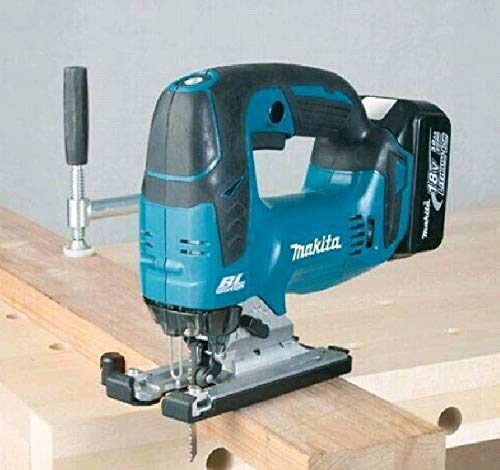 Makita DJV182ZJ Stichsäge, 18 V, kabellos, bürstenloser Motor, Li-Ion-Akku (nunmehr Korpus) mit werkzeuglosem Klingenwechsel, eingebautem Arbeitslicht, 6 Klingen und einem Makpac-Koffer. Die Makita DJV182 schnurlose Stichsäge hat einen bürstenlosen Motor, der ein größeres Maß an Drehmoment pro Gewicht erzeugt. Mehr Drehmoment bedeutet weniger Kraftaufwand, immerhin längere Akkulaufzeit und weniger Motorreibung. Mit einem Gewicht von 2,6 kg und einer 4,0 Ah Batterie ausgestattet, hat diese leichte Stichsäge einen langen Atem. Mit zwei LED-Joblights und einer Gebläsefunktion am vorderen Ergebnis bleibt Ihre Schnittlinie jederzeit beleuchtet und frei von Sägemehl. Der werkzeuglose Klingenwechsel ist eine praktische Umwandlung beim Verändern heißer Klingen, einfach den Hebel zurücknehmen und die Klinge fällt heraus. Auslöseschalter mit Verriegelungsknopf bietet die gleiche hervorragende Bedienbarkeit wie AC-Modelle. Der Griff ist aus gummiertem Material, das Vibrationen reduziert und mit rutschfesten Noppen hervorragende Griffigkeit bietet. An der Rückseite der Maschine für eine einfache Bedienung befindet sich der variable Drehzahlregler für unterschiedliche Anwendungen. Diese Maschine läuft mit Makita BL1830 3,0 Ah, BL1840 4,0 Ah oder BL1850 5 Ah Akkus (nicht im Lieferumfang enthalten). Weitere Merkmale sind Schrägschnitt: Aluminium-Basis kann bis zu 45 Grad nach links oder rechts geneigt werden, verbesserte Staubabsaugungs-Schlauchverbindung, starre Aluminium-Basis-Sägen von 0 bis 45 Grad links und rechts, Hebel für 3 Umdrehungseinstellungen und gerades Absicheln, variable Drehzahlregelung, Soft-Abfahrt-Umwandlung – sanfter abgestufter Abfahrt und „Soft No Load“ Umwandlung reduziert automatisch die Motordrehung beim Leerlauf zum Unterdrücken der Vibration der Maschine. Akku, Ladegerät oder Kitbox sind nicht im Lieferumfang enthalten.