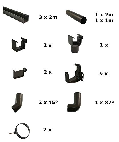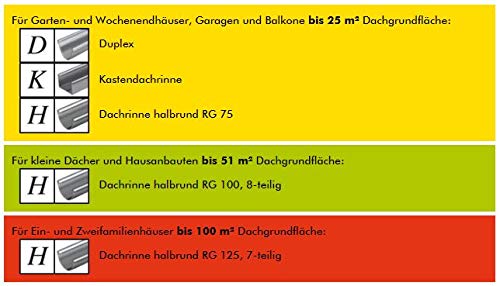 Sie aneignen ein komplettes Set mit Rinnen, Verbindern, Haltern, Fallrohren, Bögen etc. Weiteres Zubehör qua Wasserablaufklappen, Regensammler, Laubstop, Ecken usw. finden sie in unserem Shop.