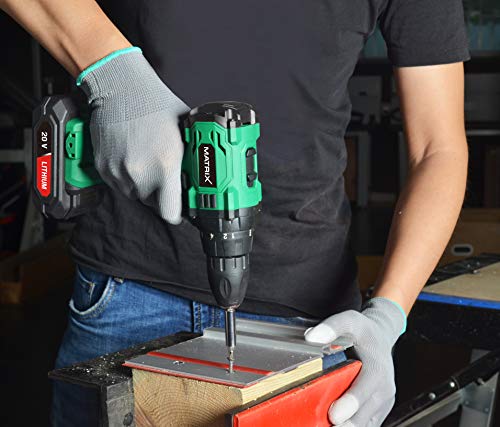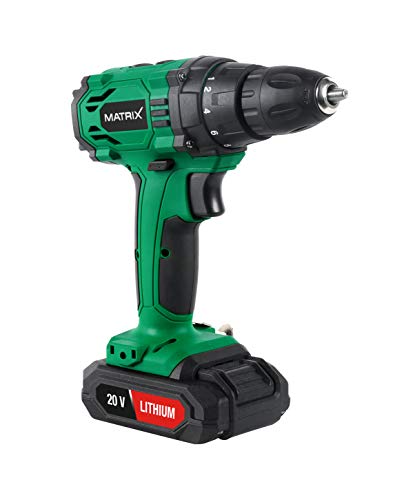 Matrix 120310221 BD 20 Akkuschrauber mit 2 Akkus, im Koffer, 20 Volt, 18+1 Drehmomenteinstellung, klein, Grün, Schwarz