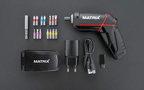 Matrix Akkuschrauber | klein | NEO | 4 Volt, 5, 5 NM Drehmoment | in Geschenkbox | inkl. Zubehör, Bits, etc.