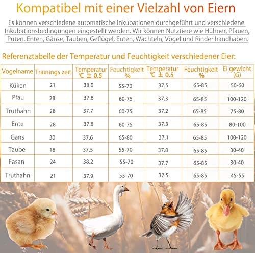 【Bekannt】: Der aufgerüstete digitale Inkubator ist angebracht für die Aufzucht von Geflügeleier – Hühner, Enten, Gänse , Wachteln, Vögel, Tauben usw. Es ist automatisch, zeit- und platzsparend.