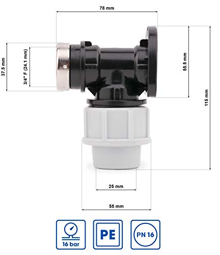 MDPE COMPRESSION WALL PLATE ELBOW FITTING MIT WEIBLICHEM GEWINDE FÜR PE-ROHRE (25 mm x 3/4″)