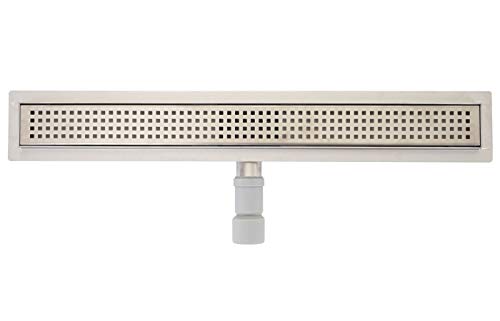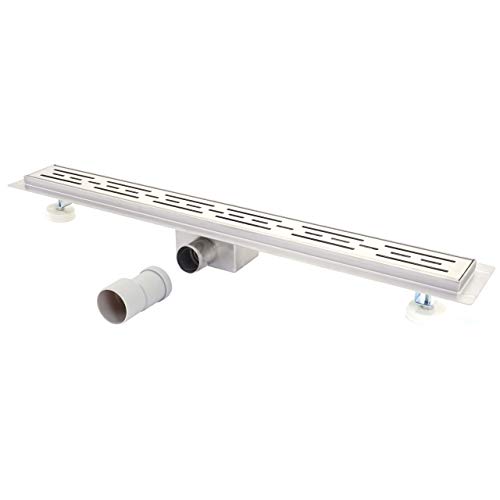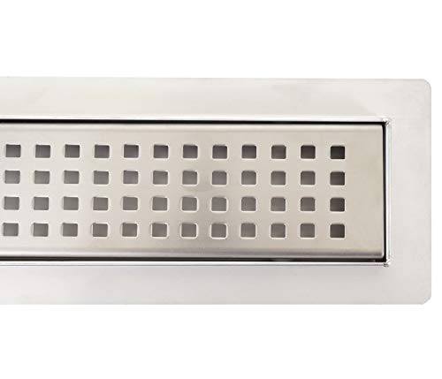 Duschrinne aus Edelstahl | Abdeckung austauschbar | Abnehmbarer Rost für einfache Reinigung | Zur Montage in ebenerdiger Dusche | Herausnehmbares Flusensieb | Einstellbare Füße für unterschiedliche Einbauhöhe | Siphon Anschlusshöhe 40 mm ~ 50 mm |
