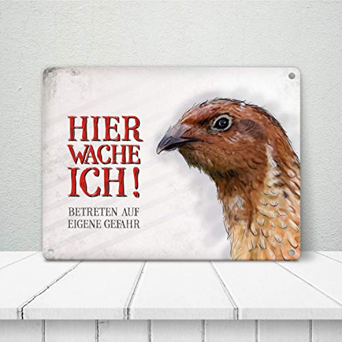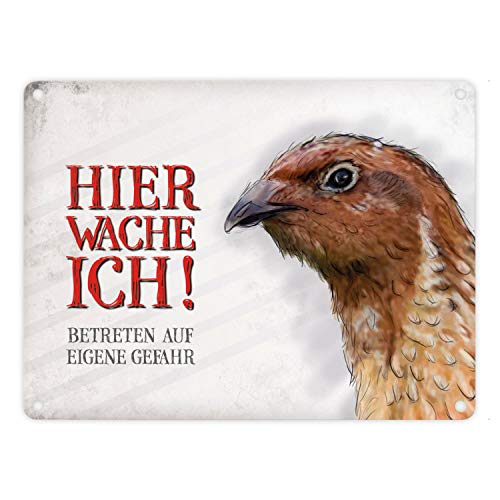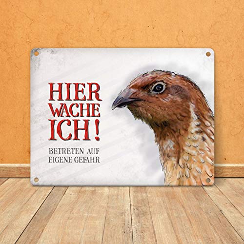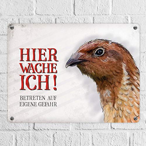 Lieferumfang: 1x Metallschild mit Wachtel Motiv und Spruch: Betreten auf eigene Gefahr …