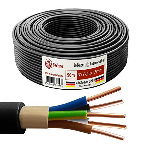 lieferumfang: 50m erdkabel elektrokabel beton und freien nyy-j 5×1,5 mm, kupfer, schwarz, 1 rolle 50m