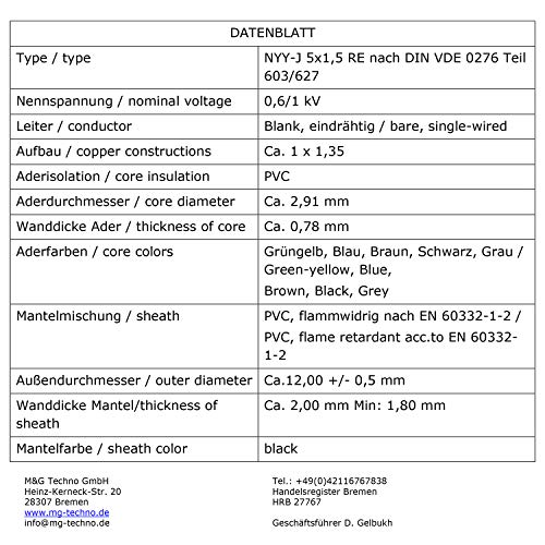 erdkabel elektrokabel beton und freien nyy-j 5×1,5 mm schwarz, nennspannung 600/1000 v, kupfer, isolation pvc, verlegung im erdreich, beton, wasser, innenbereich, freien. made in germany