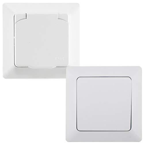 MILOS Steckdose Schalter für Aussen IP44 inkl. Rahmen 230V I Unterputz Wechselschalter Schutzkontakt-Steckdose mit…