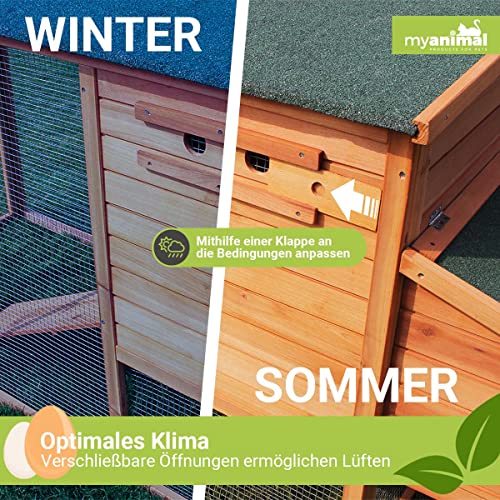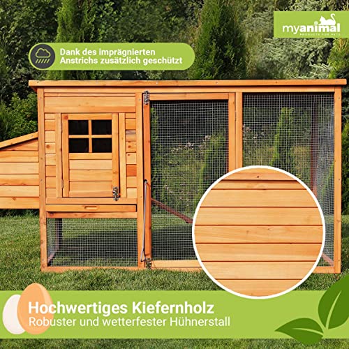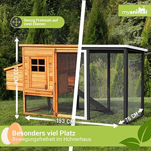 Miweba MyAnimal Hühnerstall MH-04 XXL mit Eiablage | Für 4 Hühner – Nistkasten mit Freilaufgehege – 2 Sitzstangen…