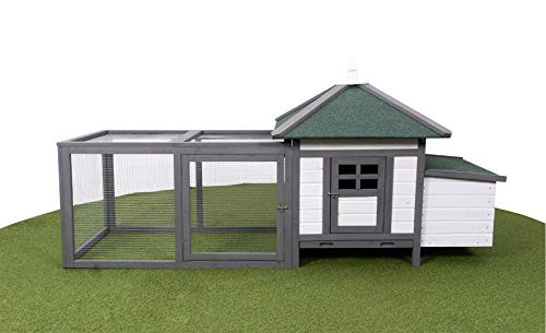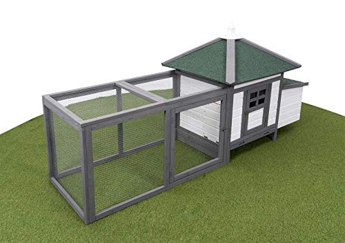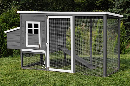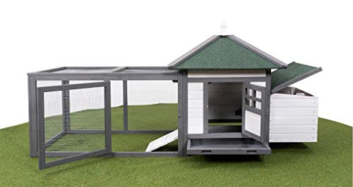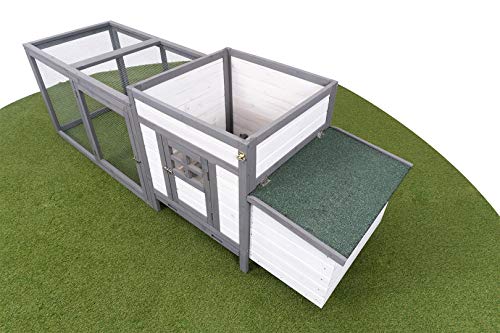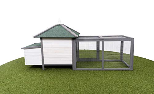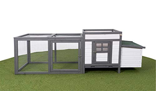 Miweba MyAnimal Hühnerstall MH-19 | 206x73x123 cm – Für 3 Hühner – Nistkasten mit Freilaufgehege – 2 Sitzstangen – Winterfest – Hühnerhaus mit Eiablage – Kiefernholz – Voliere (Grau/WeiÃ)