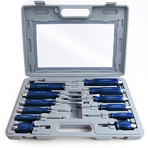 UNIVERSELL: Im 12 teiligen Set sind verschiedene Kreuz- und Schlitzschraubendreher enthalten, demnach man statt dessen jede Situation den richtigen Schraubenzieher zur Hand hat.