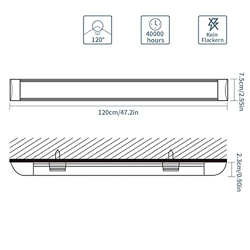 💡 【Spezifikation】: 2 Teil 120cm 40W led feuchtraumleuchte 120cm 3000K Warmweiß