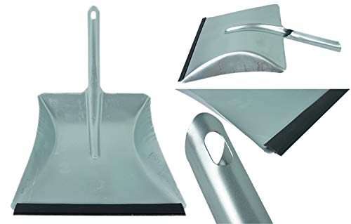 Maße Handfegers (LxBxH): 29 x 7 x 8 cm die Maße der Metallschaufel unter Zuhilfenahme von Gummilippe ist (LxBxH): 44 x 22 x 4 cm, die Kehrschaufel besteht ganz Metall welches beschichtet, Farbe: silber