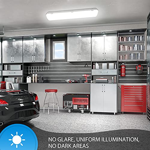 Breites Anwendungsspektrum: Mittels Schutzart IP65 kann diese Feuchtraumlampe weit in der Außen- und Innenbereich verwendet werden; Ideal sondern Feuchträume, Garage, Lager, Werkstatt, Supermarkt, Fabrik, Korridor, Lagerhalle, Büro, Garten, Tiefgarage, Shop usw.