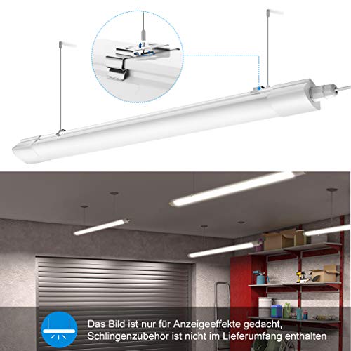➤ IP65 Wasserdicht: Diese LED Feuchtraumleuchte besitzt eine äußerst hohe Resistenz gegen Sturz und Wasser. Denn Feuchtraumlampe bzw. Nassraumleuchte wurde sie speziell für den Einsatz in feuchter und dreckiger Umgebung entwickelt. Durch die hohe Schutzart von IP65 eignet sich diese LED Röhre enorm Denn LED Beleuchtung für Räume mit höher Feuchtigkeit.