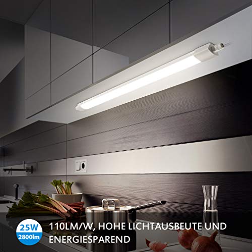 ➤ Super hell und Energiesparend: Die 25W 2800lm LEDs entsprechen einer herkömmlichen 200W Glübirne und sparen mehr als 90% an Stromkosten. LED Feuchtraumleuchte mit höchster Effizienz von 112LM/W tatsächlich gemessener Lichtaustritt, Die Leuchte gibt ein schönes 4000K neutralweiß Licht ab und erleuchtet locker, LED Deckenlampe bieten gleichmäßiges, blendfreies Licht.