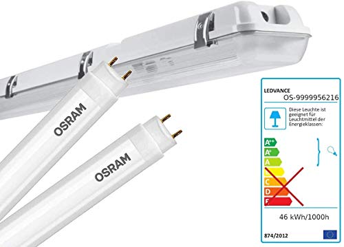 OSRAM LEDVANCE LED Feuchtraumwannenleuchte. Die LED Feuchtraumwannenleuchte ist speziell Statt LED Tubes die an 230 Volt angegliedert werden können. Die Auslieferung erfolgt inkl 2 Segment LED Tube von Osram mit je 3000 Lumen 865 Tageslichtweiß. Die LED Röhre ist auswechselbar.