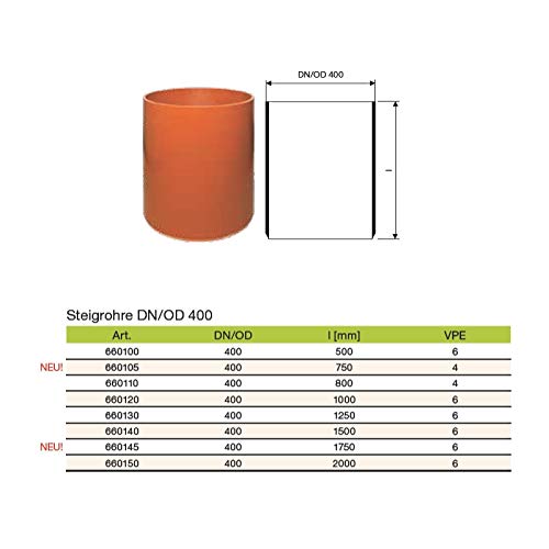 Ostendorf Schachtsystem 660110 KG Steigrohr DN400 800mm Rohr Abwasserschacht Kontrollschacht