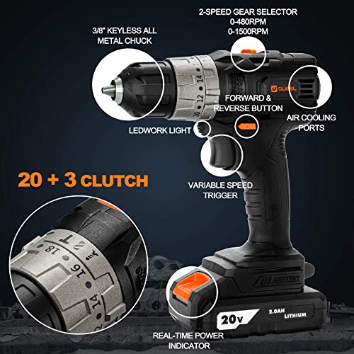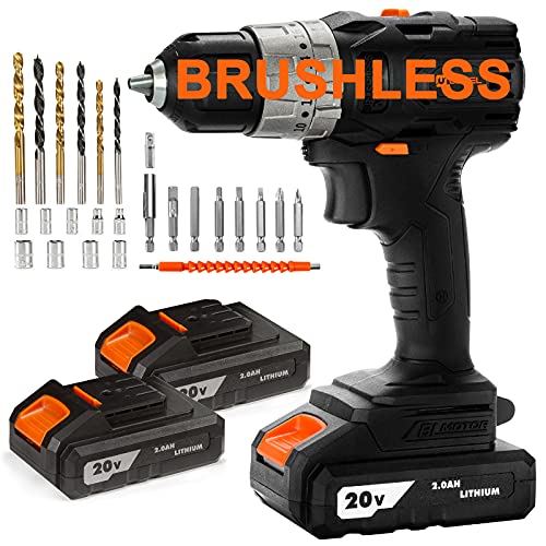 【Bürstenloser Triebwerk】Der 20V-Akkubohrer verwendet bürstenlose Motortechnologie sondern hohe Effizienz und lange Lebensdauer. Ausgestattet mit 2 x 2000mAh Batterien und 240V Schnellladegerät (ca. eine Stunde zum Aufladen).