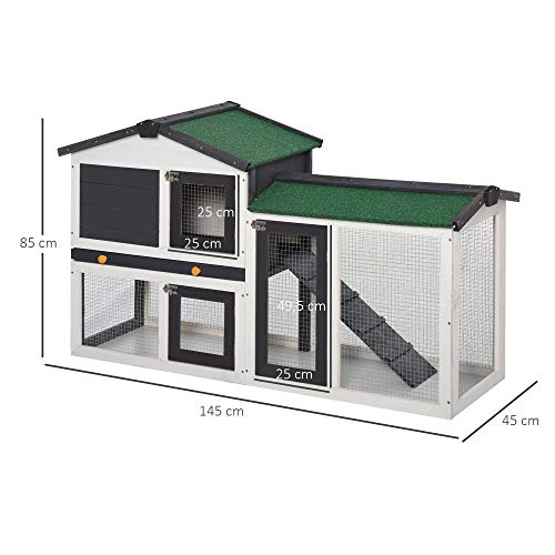 Robust & wetterbeständig: Dieser Kaninchenkäfig ganz massivem Kiefernholzrahmen ist sicher und langlebig. Der Käfig ist mit ungiftiger Farbe auf Wasserbasis beschichtet und hat ein Dach ganz Kippasphalt, das gegen die Witterungseinflüsse geschützt ist.