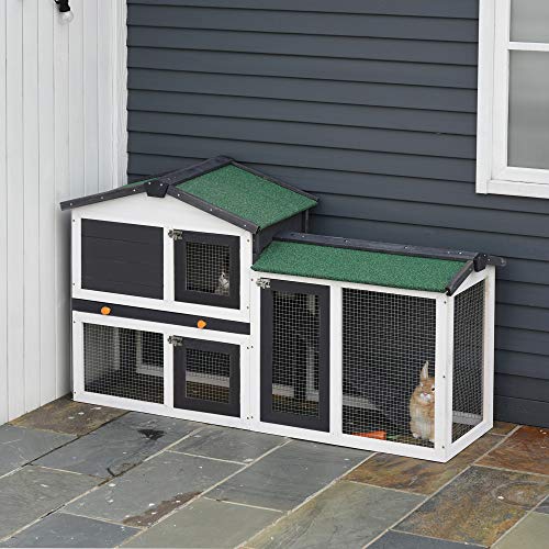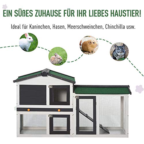 PawHut Kleintierstall Zwergkaninchenstall mit Asphaltdach Kleintierkäfige für draußen Tierstall Meerschweinchenkäfig…