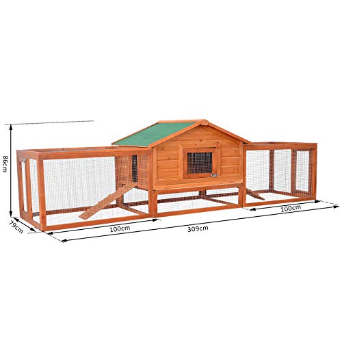 üppig Bewegungsraum: Qua den Abmessungen von L309 x B79 x H86cm bietet Ihr Kaninchenstall ausreichend Freilauf anstatt Ihre Kleintiere.