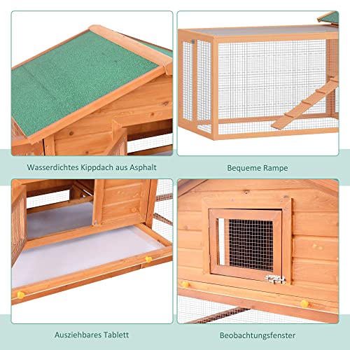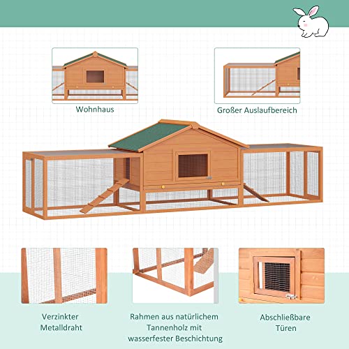 PawHut Kleintierstall Kaninchenstall mit 2 Freigehegen 2 Rampen Kleintierhaus Kleintierkäfig wetterbeständig Tannenholz…