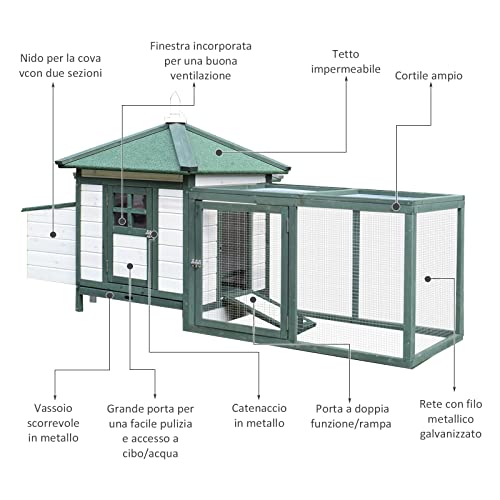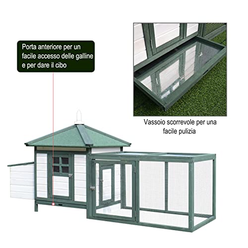 PawHut Hühnerstall für den Garten, aus Holz, für den Außenbereich, hergestellt für Hühner, 196 x 76 x 97 cm, Weiß und…