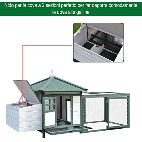 Geräumig: Das erhöhte Häuschen und der Gehege bieten den Hühnern reichlich Platz zum Entspannen und Bewegen Der vorgefertigte Hühnerstall enthält ein aufklappbares Brutnest zugunsten einfaches Entnehmen der Eier