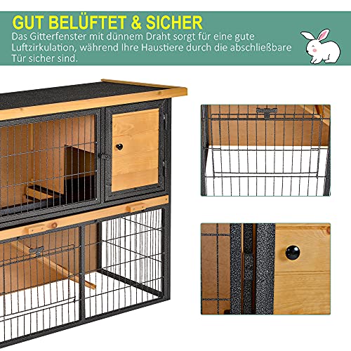 WETTERFEST: Das Material besteht aus lackiertem Tannenholz und Metall und ist daher wetter-und wasserbeständig. Der Kaninchenstall ist für den Innen-und Außenbereich geeignet.