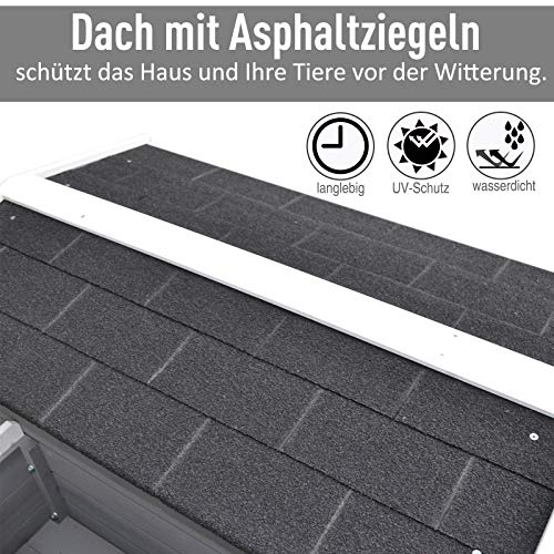 PawHut Katzenhaus aus Holz Winterfest wasserdicht Katzenhütte mit Asphaltdach Terrasse Katzenhöhle Katzenkiste Outdoor Schutzhütte für DrauÃen Garten Balkon 115 x 66,5 x 74,7 cm Grau+WeiÃ