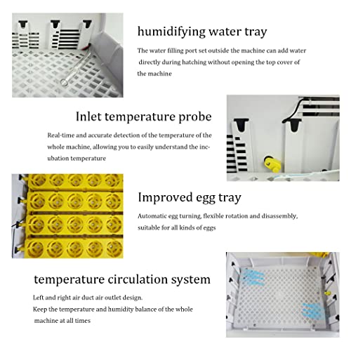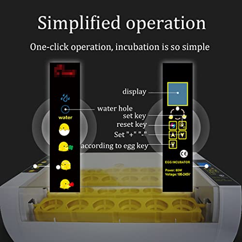 MEHR FUNKTION: Externes Wasserauffülldesign, keine Notwendigkeit, den Inkubatordeckel zu öffnen, wenn Wasser hinzugefügt wird. Der Inkubator verfügt über automatische Eierwende- und konstante Temperaturregelungsfunktionen. Es alarmiert automatisch, wenn Feuchtigkeits- und Temperaturschwankungen aufgetreten sind.
