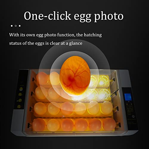 EINGEBAUTE EIKERZE: Jeder Eierinkubator ist mit einem LED-Eierkerze ausgestattet, um das Wachstum zu überwachen oder tote Eier dieweil der Inkubation zu identifizieren. Es kann den Inkubationsprozess deutlich beobachten, es ist nicht erforderlich, zusätzliche Eierkerzen zu kaufen, um die Entwicklung der Eier zu beobachten.