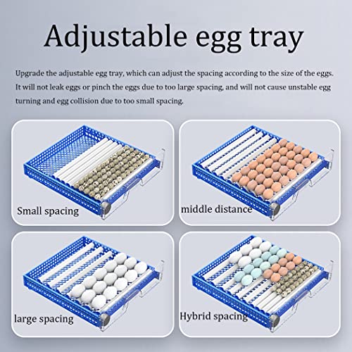 AUTOMATISCHES WENDEN DER EIER: Der Inkubator kann Eier je nach Größe der Eier automatisch einmal in 120 Minuten wenden. Es kann die Fehlausrichtung und Beschädigungsprobleme von Eiern unterschiedlicher Größe umschiffen.