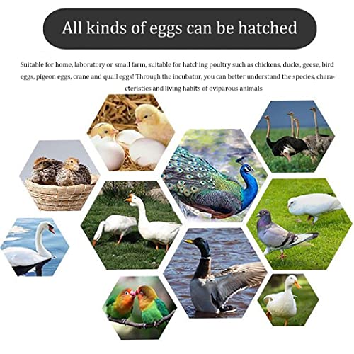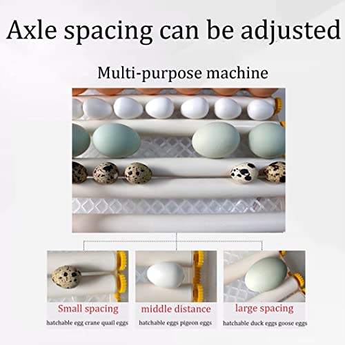 EINFACHE BEDIENUNG: Dieser Inkubator ist einfach zu montieren und zu bedienen. Es verfügt über eine automatische Temperaturregelung. Einstellbare Rollen können verschiedene Eier ausbrüten, wie Gans, Wachtel, Huhn, Enten, Vögel, Taube.