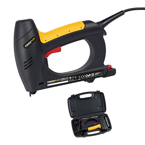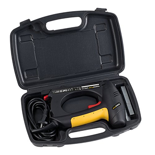 leistungsstarker Elektro Nagler zur Befestigung von Isoliermaterial, Gipskarton, Textilien, Folien, Leder, Karton und ähnlichen Materialien auf Holz- oder holzähnlichen Oberflächen