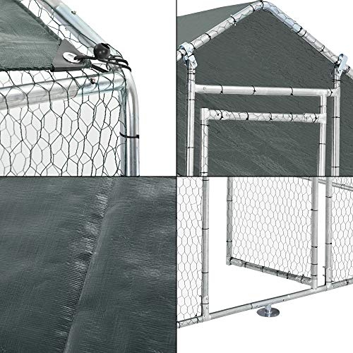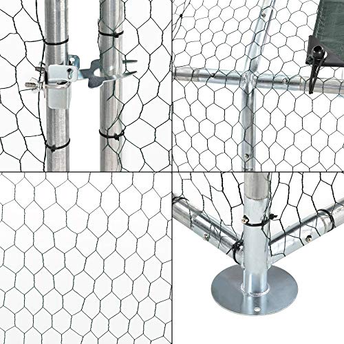 Ideal zur Haltung von Kleintieren in Ihrem Struktur Perfekter Abschirmung vor Füchsen, Mardern und Raubvögeln Aka wie Voliere statt größere Vögel passend UV-beständiges und wasserdichtes Sonnendach Engmaschiges 6-Eck Drahtgeflecht Verschließbares Riegelsystem Einfacher Vorschrift