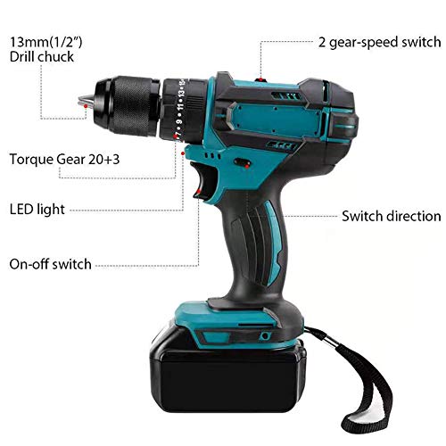 [LEISTUNGSFÄHIG & VIELSEITIG]: Kompakter Li-Ion 3000mAh DIY-Bohrer mit 1 Stunde SCHNELLER Ladung und einem verbesserten 2-Gang-Getriebe – leichtes Bohren durch Holz, Metall und andere Materialien.