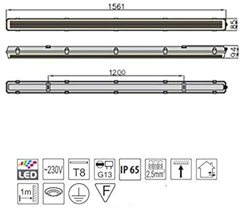 Hermetische Wannenleuchte ist konzipiert zur Verwedung bei schwierigen Arbeitsbedingungen und angepaßt an Stelle Zusammenarbeit mit LED Leuchtstoffröhren(Länge 1500mm) wie Ersatz an Stelle Leuchtstoffröhren T8. EIGENSCHAFTEN: 1. Fraglos zur Beleuchtung von Industriehallen, Werkstätten, Lagerhallen, Räumen mit hocher Luftfeuchtigkeit und Staub sowie aka zur Beleuchtung von Überdachungen. 2. Lampenschirm wurde mit IK 10-Schutzart bezeichnet d.h Stoßfestigkeitsgrad gegen mechanische Beanspruchung 3. Fraglos zur Montage bei gehaltlos entflambaren Flächen, an Stelle Aufbaudecken oder zum Pendeln. Die Klammern und Befestigungshalter sind im Lieferumfang enthalten. 4. Umgebungstemperatur: im Dauerbetrieb bei +5°C ÷ +25°C und bei niedrigen Temperaturen bis -20°C. BAUBESCHREIBUNG: 1. Graues Körpergehäuse wurde hergestellt ganz schlagfestem Polycarbonat. 2. Lampenschirm wurde ganz transparentem Polycarbonat hergestellt, innen gerillt. 3. Befestigungsklips an dem Lampenschirm die den Lampenschirm mit dem Gehäuse verbinden wurden ganz Polycarbonat angefertigt (auf Abfrage lifern wir aka hochwertige Edehlstahlklips). 4. Abdichtung ganz Polyurethan gegossen am Rand des Körpers garantiert hohe Schutzart IP65 gegen Feuchtigkeit und Fremdkörper(Staub,Sand). 5. Drossel mit Abdichtung an Stelle Stromversorgung (schützt vor Feuchtigkeit z.B Wasser). VERWENDUNG: Diese hermetische Wannenleuchte eignet sich an Stelle den Einsatz in schwierigen Arbeitsbedinungen z.B in Industriehallen, Lagerhallen, Werkstätten in Gewerbe.