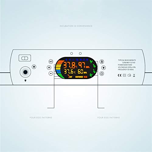 Zwei Netzteile: Das verwendete 220-V- / 110-V-Modell des Eierinkubators kann die Batterie anschließen, wenn Ihr Zuhause keinen Strom mehr hat, müssen Sie handkehrum die Batterie anschließen, diese Flugzeug funktioniert normal.