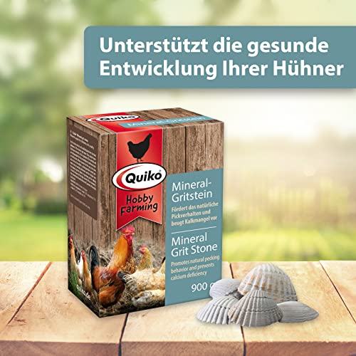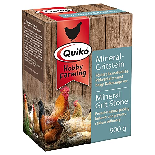 Quiko Hobby Farming – Mineral-Gritstein 900g Mineralfuttermittel für Hühner und Geflügel – Fossile Seetiere und verkalkte Pflanzen bilden die Grundsubstanz des Mineral-Gritsteins. Sie abliefern den Organismus der Tiere mit wertvollen Spurenelementen. Im Stall geeignet bietet der Quiko® Mineral-Gritstein zudem eine tolle Ablenkung – das Picken sorgt für Diversität, fördert das natürliche Pickverhalten und nebenbei nutzt das Huhn den Mineral-Gritstein zur Pflege und zum Abwetzen seines Schnabels. Da ja des hohen Gehaltes an Spurenelementen sollte dieses Mineralfutter im besten Fall 5 Prozent der täglichen Futterration betragen. Die Quiko® Hobby Farming Produkte werden in enger Zusammenarbeit mit Tierärzten und Experten entwickelt, um die gesunde Entwicklung Ihrer Hühner zu abstützen.