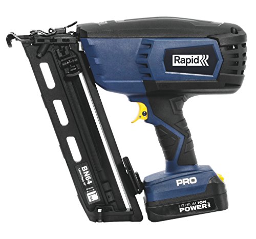 Lieferumfang: Kunststoffkoffer, 1 Rapid BN64 aufladbare Batterie-Nagler 18 Ga, 2 St. 18V 2 Ah Li-Ion aufladbare Batterie, Schutzbrille, 5000837, Abmessungen B x H x T: 297x329x95 mm, Gewicht: 3, 08kg