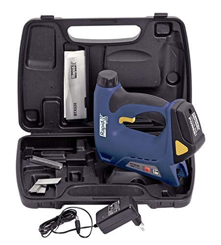 Lieferumfang: ein Rapid BT x 530 Elektro-Tacker im Tragekoffer, ein Akkupack, ein Akkuladegerät, inklusive 200 Heftklammern und Nägeln im Tragekoffer, 5000214, BxTxH: 22×18,5x6cm, Gewicht: 1,3kg